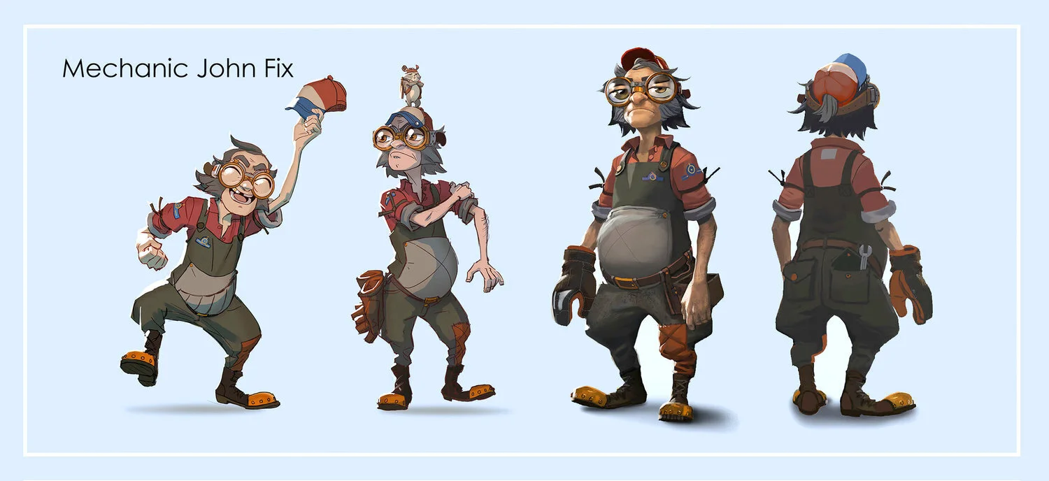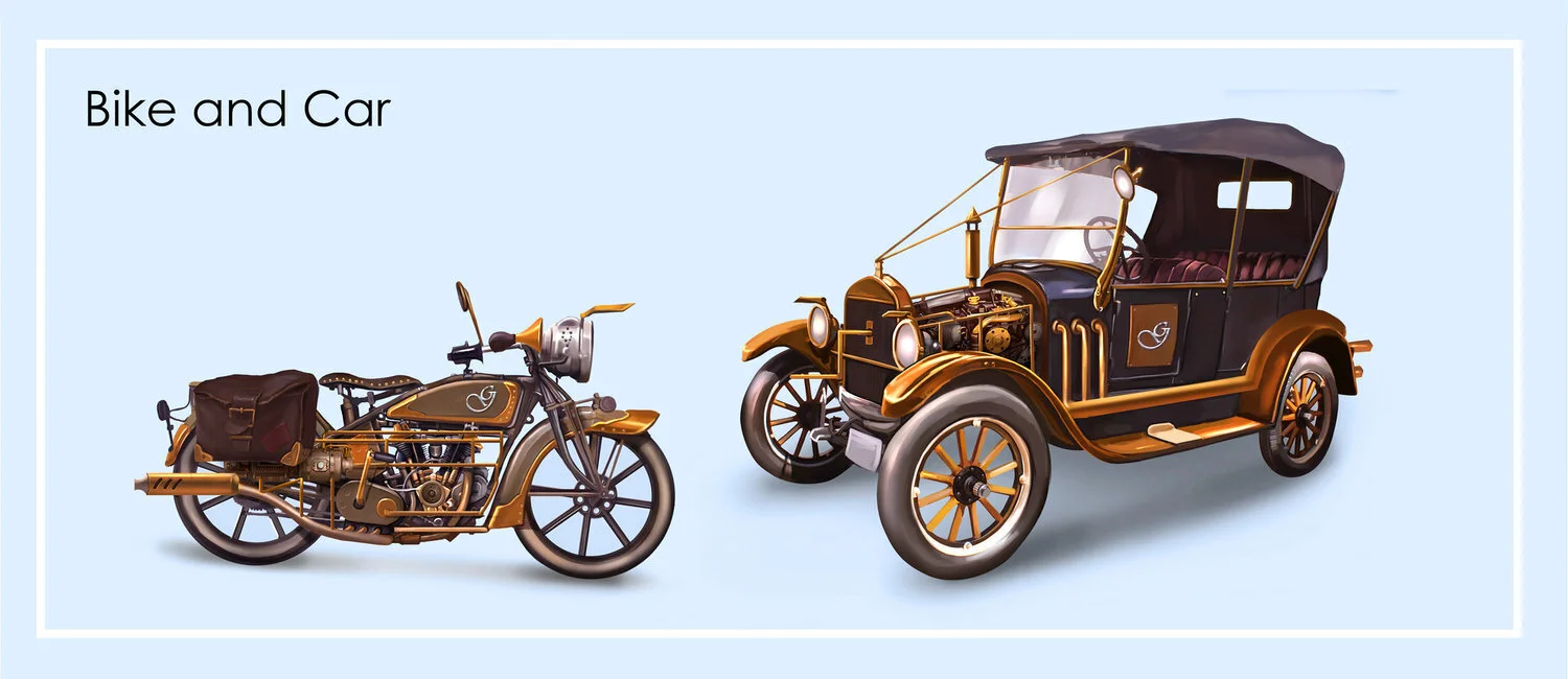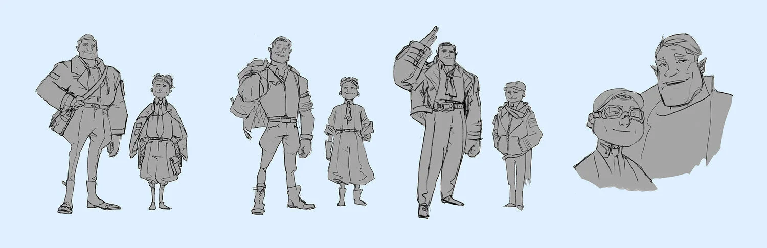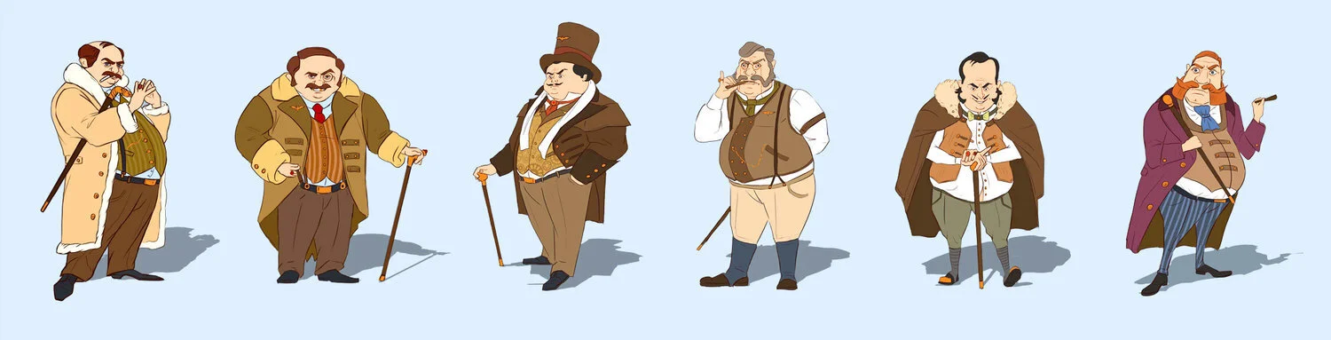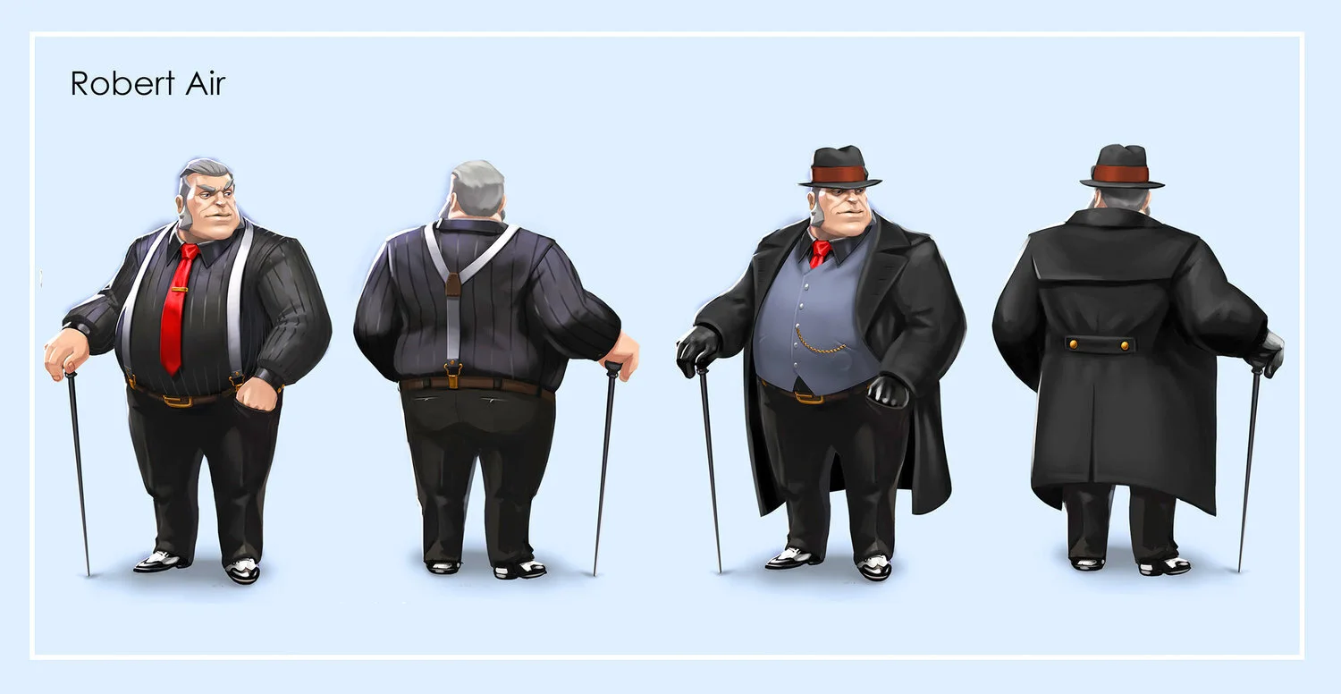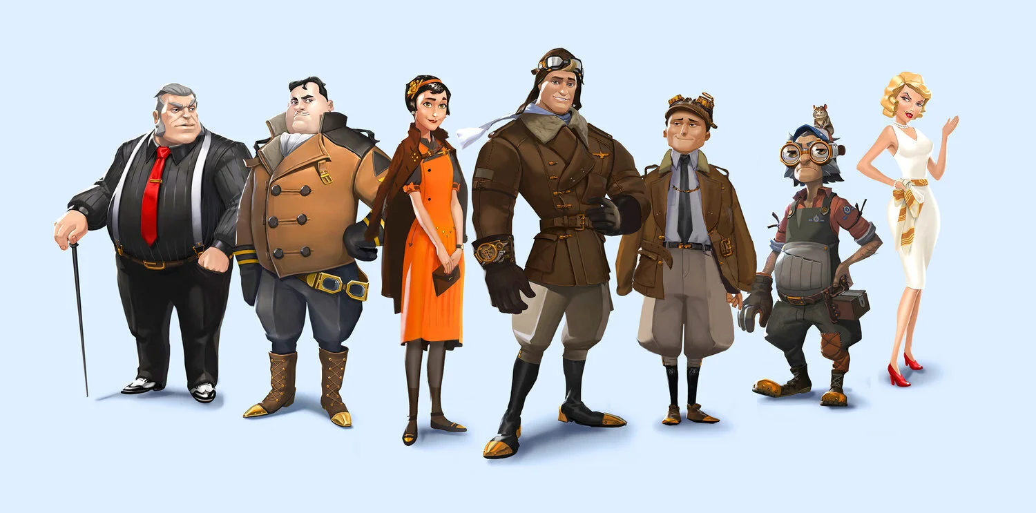 Our mission was to design characters and environments according to a very specific description and backstory. The visual style is mainly influenced by 1930s fashion, Art Deco and steampunk. The challenging nature of the project made it enjoyable to explore styles and designs. Work was done together with ANIMATRIX Studio.